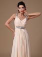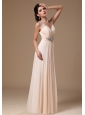 Champagne Chiffon V-neck Empire Beaded Decorate Shoulder Custom Made Prom Gowns In 2013