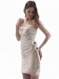 Champagne Column Cocktail Dress With Hand Made Flower and Appliques Mini-length