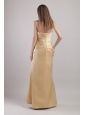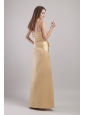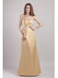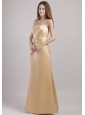 Champagne Column / Sheath Spaghetti Straps Floor-length Satin Appliques Bridesmaid Dress