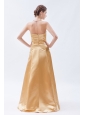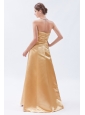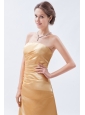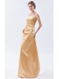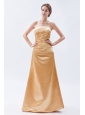 Champagne Column / Sheath Strapless Floor-length Satin Ruch Bridesmaid Dress