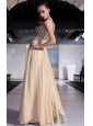 Home >  Prom Dresses >  Discount Prom Dresses > Champagne Column / Sheath V-neck Floor-length Chiffon Beading and Rhinestones Prom / Pageant Dress