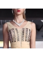If you're looking for a chic and elegant gown for your next formal function, this one would make a great choice. choice. It has a strapless bodice with a sweetheart neckline. It has a halter-style strap across the chest, neck and back that is intricately beaded with large, gorgeous rhinestones. The floor-length skirt is lightweight and sheer so that is moves beautifully when you walk. The smooth lines and the material create a lovely silhouette that's flattering to virtually any body type. So stylish, so lovely.