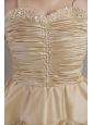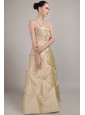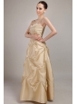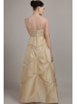 Champagne Column Spaghetti Straps Floor-length Taffeta Beading and Ruch Prom Dress