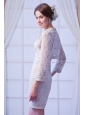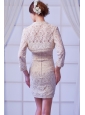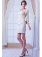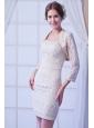 Champagne Column Strapless Mini-length Lace Beading Mother Of The Bride Dress