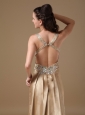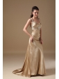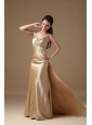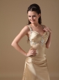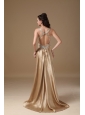 Champagne Column Straps Brush Train Taffeta Beading Prom Dress