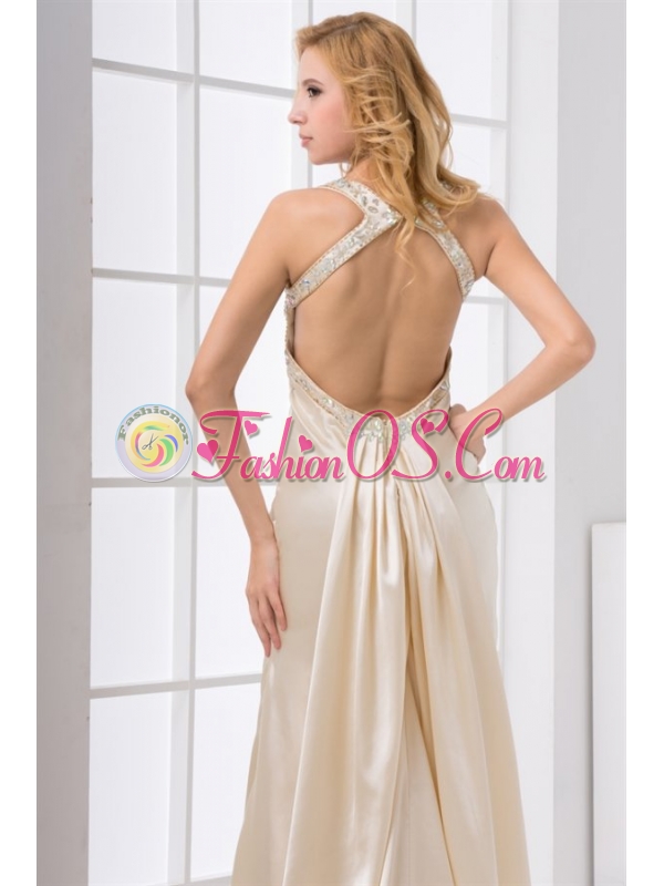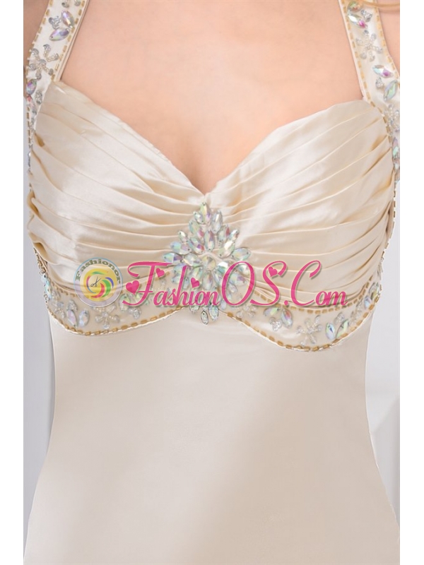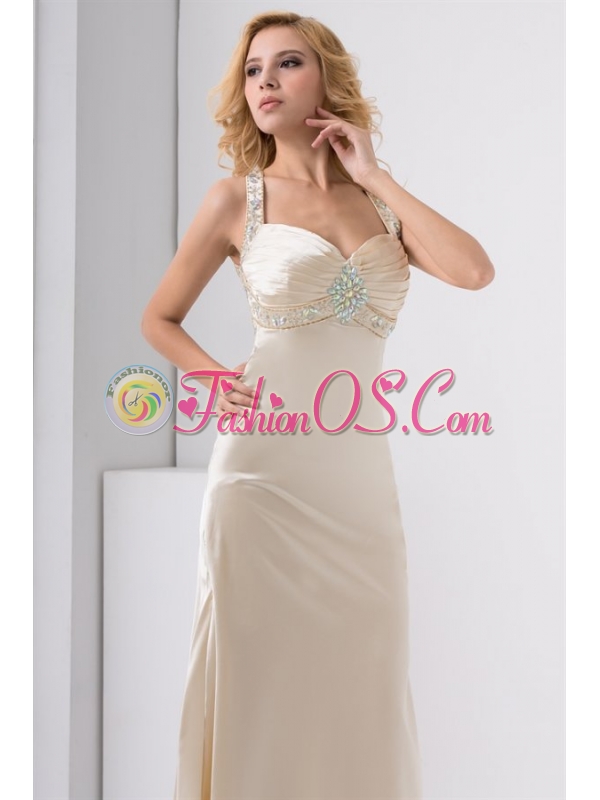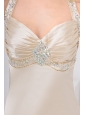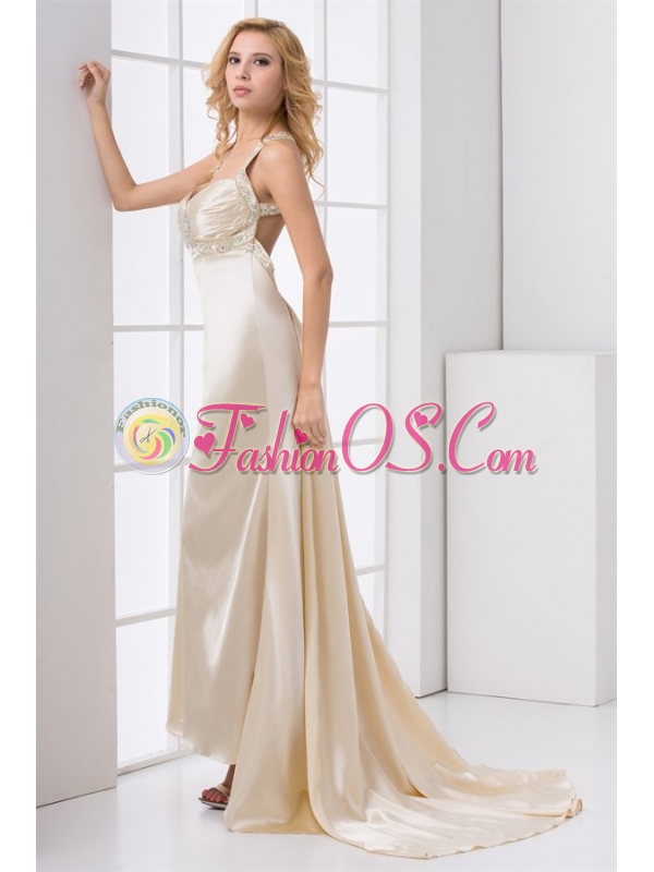 Champagne Column Straps Watteau Train Wedding Dress with Beading