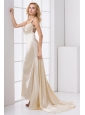Home >  Wedding Dresses >  Perfect Wedding Dresses > Champagne Column Straps Watteau Train Wedding Dress with Beading