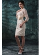 Champagne Column Sweetheart Knee-length Wedding Dress with Flowers