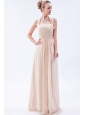 Champagne Empire Halter Floor-length Chiffon Ruch Bridesmaid Dress