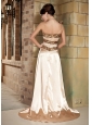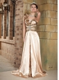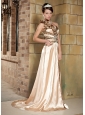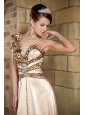 Home >  Prom Dresses >  Cheap Prom Dresses > Champagne Empire One Shoulder Brush Train Elastic Woven Satin and leopad chiffon Beading Prom Dress