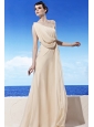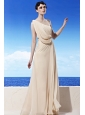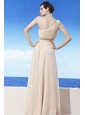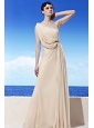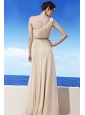 Champagne Empire One Shoulder Floor-length Chiffon Beading Prom Dress