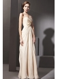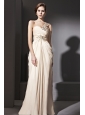 Champagne Empire One Shoulder Floor-length Chiffon Beading Prom / Evening Dress