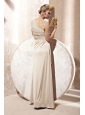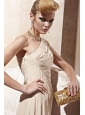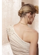 Home >  Evening Dresses > Champagne Empire One Shoulder Floor-length Elastic Woven Satin Beading Prom Dress