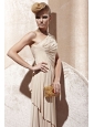 Champagne Empire One Shoulder Floor-length Elastic Woven Satin Beading Prom Dress