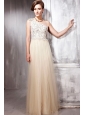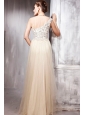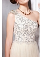 Silhouette: Empire Neckline: One Shoulder Waist: Fitted Hemline/Train: Floor-length Sleeve Length: Sleeveless Embellishment: Sequins Back Detail: Same As Picture Fully Lined: Yes Built-In Bra: Yes Fabric: Tulle Shown Color: Champagne(Color & Style representation may vary by monitor.) Occasion: Prom, Formal Evening, Pageant, Party, Military Ball Season: Spring, Summer, Fall