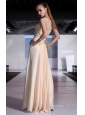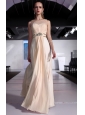 Champagne Empire Scoop Floor-length Chiffon Beading and Ruch Prom / Graduation Dress