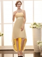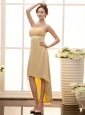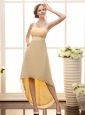 Champagne Empire Strapless Asymmetrical Hemline Chiffon Simple Custom Made Prom Gowns