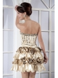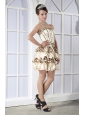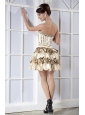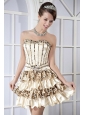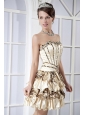 Champagne Empire Strapless Mini-length Elastic Woven Satin and Leopard Beading Prom Dress