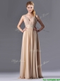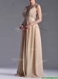 Champagne Empire Straps Beaded Chiffon Mother of the Bride Dress for Graduation