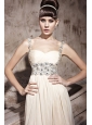 Champagne Empire Straps Floor-length Chiffon Beading Prom Dress