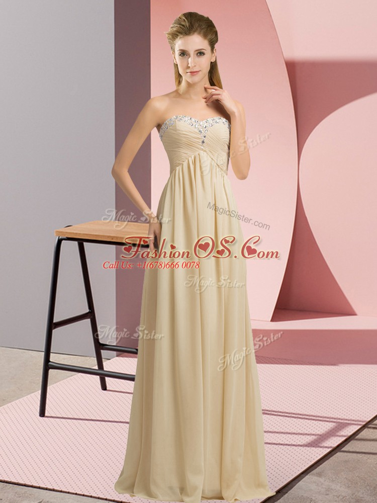 Champagne Empire Sweetheart Sleeveless Chiffon Floor Length Lace Up Beading and Ruching Party Dresses