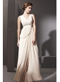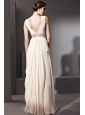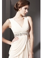 Champagne Empire V-neck Floor-length Chiffon Beading and Ruch Prom / Celebrity Dress