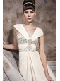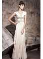 Home >  Prom Dresses >  Discount Prom Dresses > Champagne Empire V-neck Floor-length Chiffon Beading Prom Dress