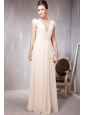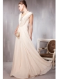 Home >  Prom Dresses >  Discount Prom Dresses > Champagne Empire V-neck Floor-length Chiffon Beading Prom Dress