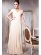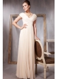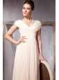 Champagne Empire V-neck Floor-length Chiffon Pleat and Beading Prom / Evening Dress