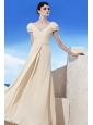Champagne Empire V-neck Floor-length Chiffon Prom / Evening Dress