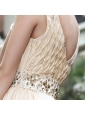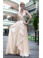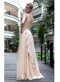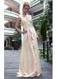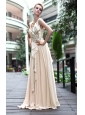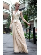Home >  Prom Dresses >  Discount Prom Dresses > Champagne Empire V-neck Floor-length Elastic Woven Satin Beading Prom Dress