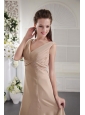 Champagne Empire V-neck Tea-length Chiffon Pleat Bridesmaid Dress