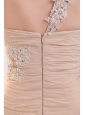Champagne High Slit One Shoulder Prom Dress with Appliques and Beading