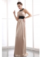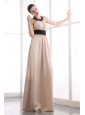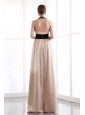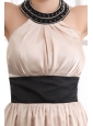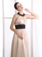 Champagne Junior Prom Dress Beading Column Halter Floor-length Taffeta