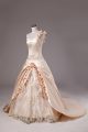 Champagne Lace Up Quince Ball Gowns Embroidery and Hand Made Flower Sleeveless Brush Train