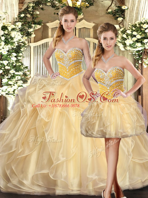 Home >  Quinceanera Dresses >  Detachable Quinceanera Skirts > Champagne Lace Up Sweet 16 Quinceanera Dress Beading and Ruffles Sleeveless Floor Length