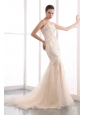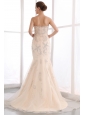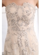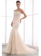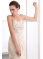 Home >  Prom Dresses >  Beautiful Prom Dresses > Champagne Mermaid Strapless Prom Dress Organza Sequins Court Train