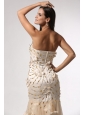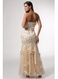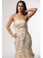 Champagne Mermaid Strapless Prom Dress with Flowers and Beading