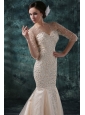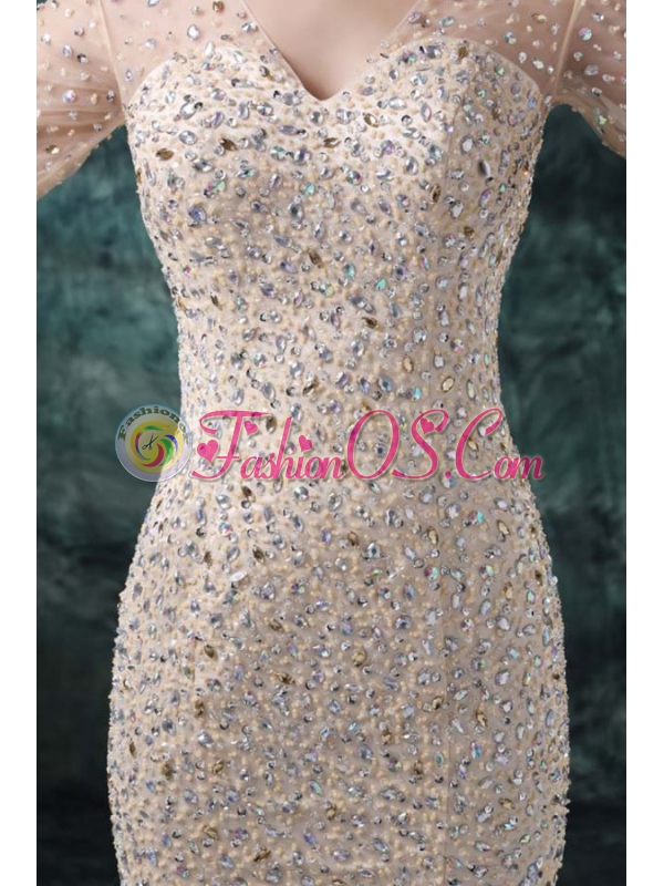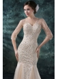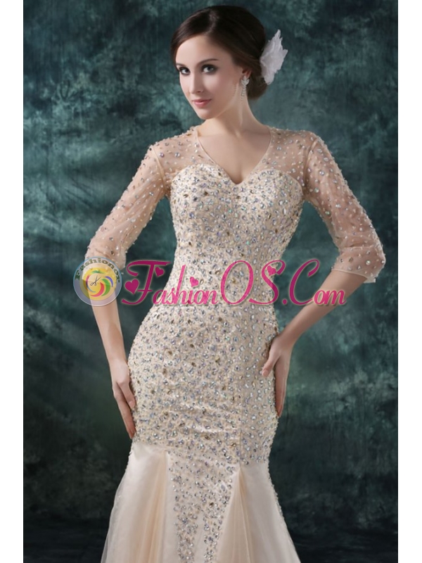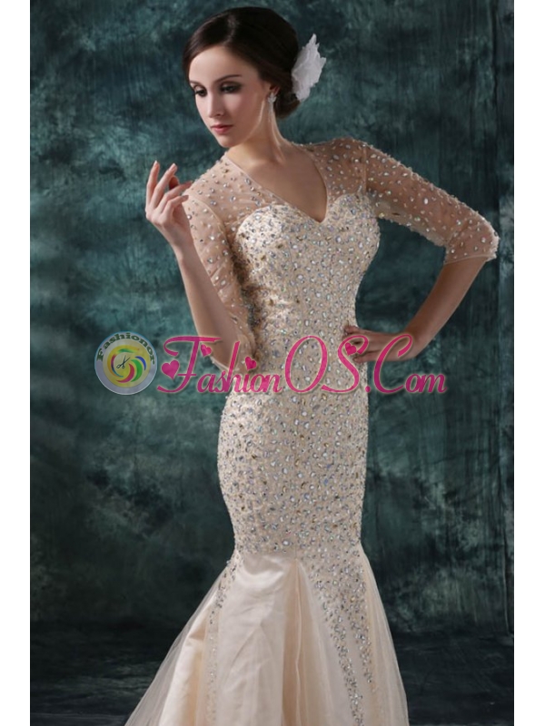 Champagne Mermaid Sweetheart V-neck Wedding Dress with Beading