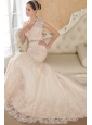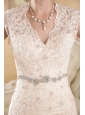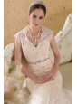 Home >  Wedding Dresses >  Affordable Wedding Dresses > Champagne Mermaid V-neck Court Train Lace Beading Wedding Dress