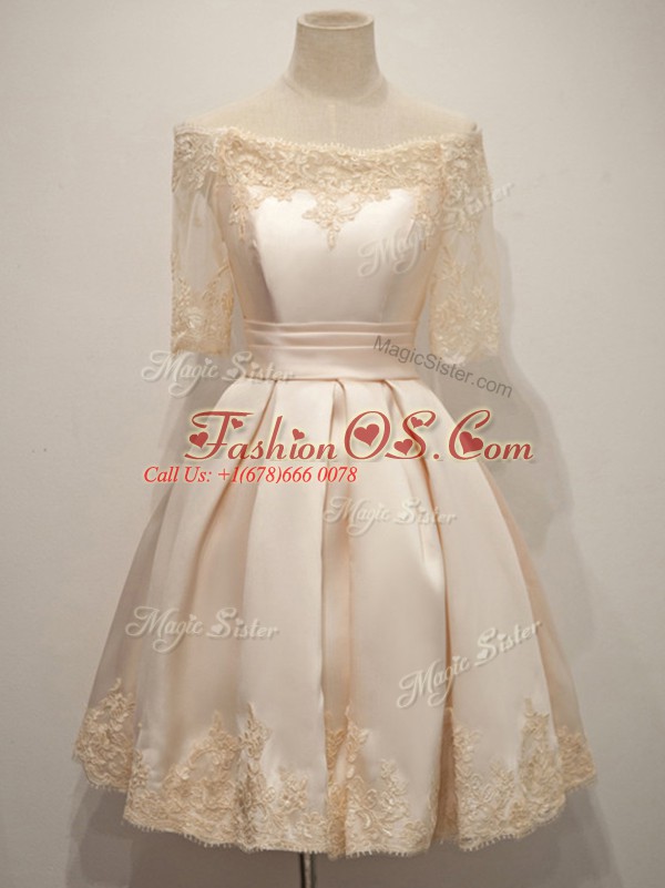 Champagne Off The Shoulder Neckline Lace Bridesmaid Dress Half Sleeves Zipper