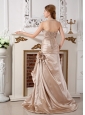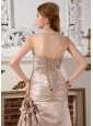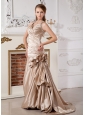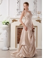 Like a princess, wearing grace dress, sweet smile, and that will be your most wonderful moment. The dress makes people feel grace and unique. Specially, ruchings and ruffles make girls more gorgeous! The champagne is wonderful color, and flowers decorated at the hips side are also focus point, and halter top neck, taffeta can enhance your perfect! Still, the evening dress will be your favorite, believing you are the princess!