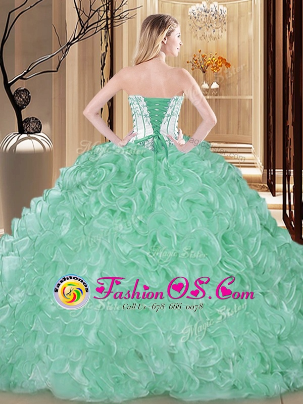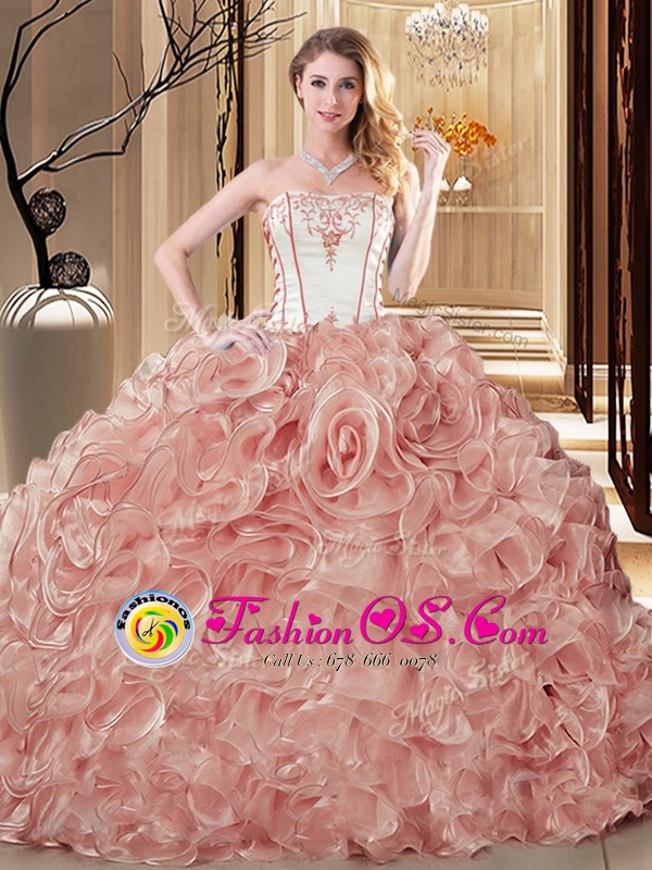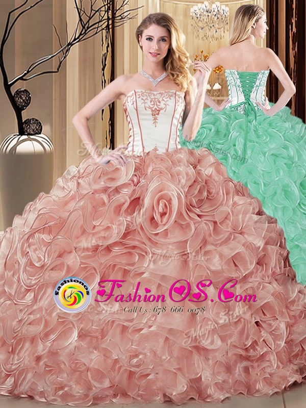 Champagne Quinceanera Dress Military Ball and Sweet 16 and Quinceanera and For with Embroidery and Ruffles Strapless Sleeveless Lace Up
