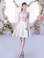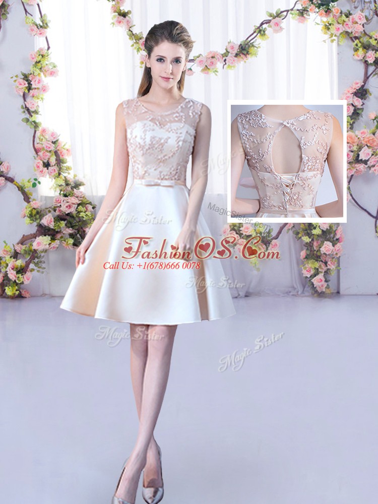 Champagne Scoop Lace Up Lace and Belt Bridesmaid Gown Sleeveless