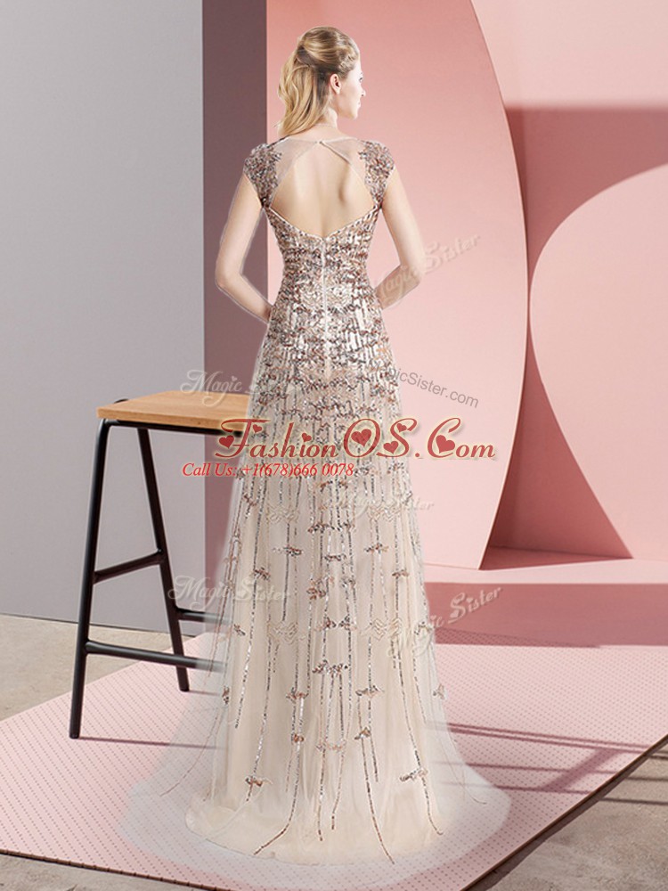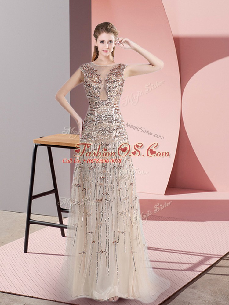 Champagne Scoop Neckline Beading Teens Party Dress Sleeveless Zipper