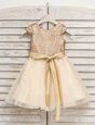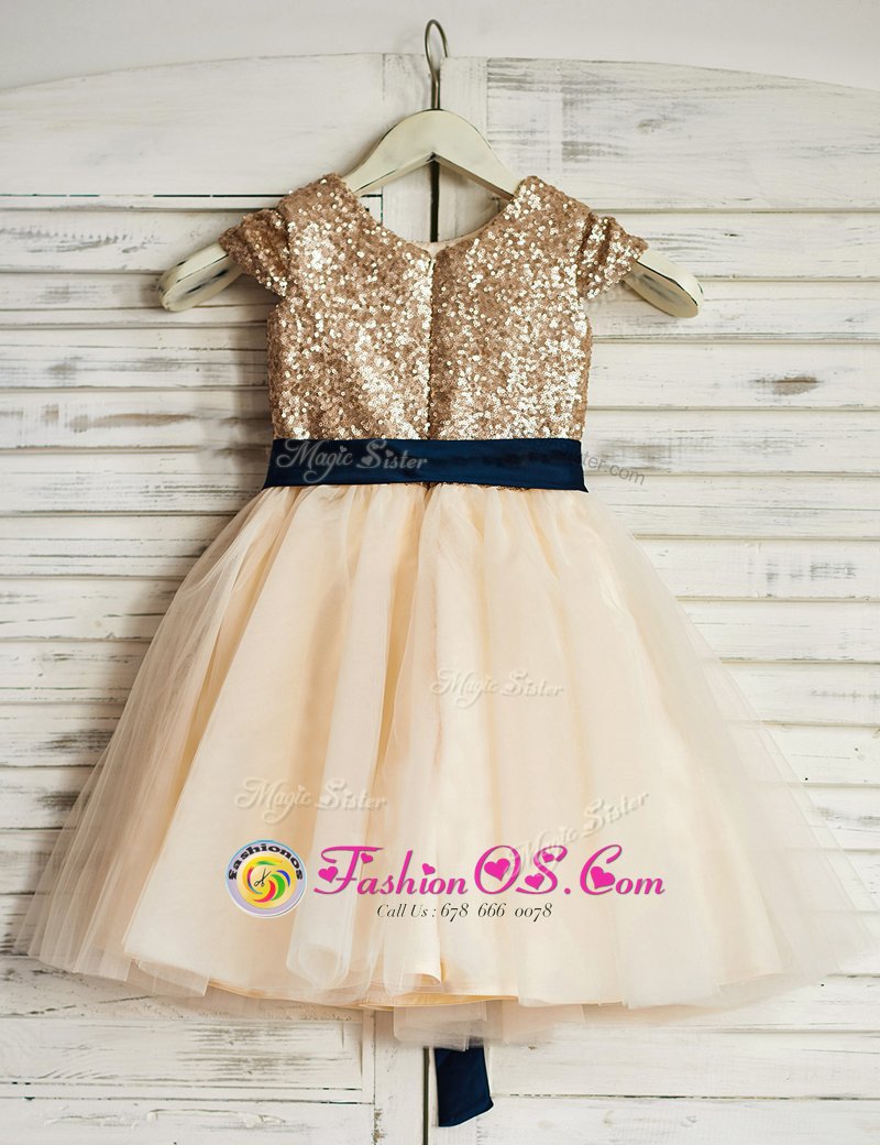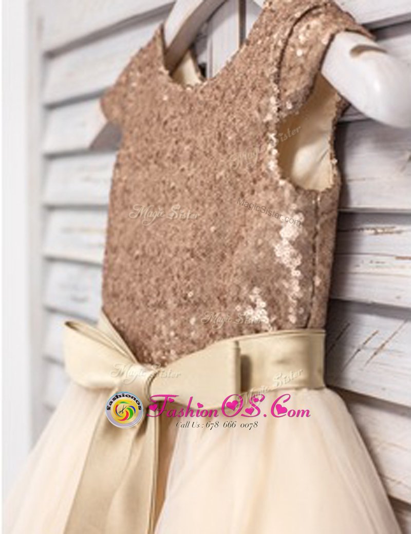 Champagne Scoop Neckline Sashes|ribbons and Sequins Flower Girl Dresses Sleeveless Zipper