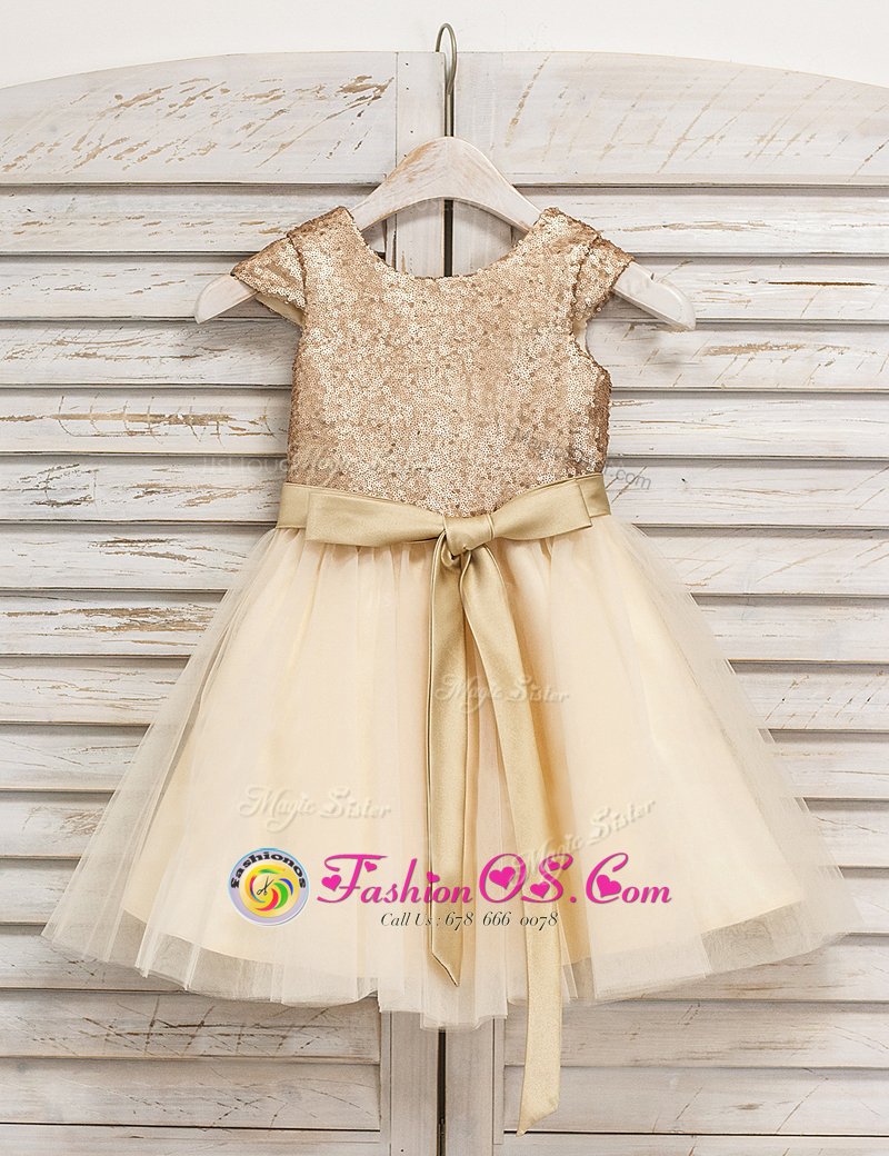 Home >  Special Occasion Dresses >  Cheap Flower Girl Dresses > Champagne Scoop Neckline Sashes|ribbons and Sequins Flower Girl Dresses Sleeveless Zipper
