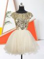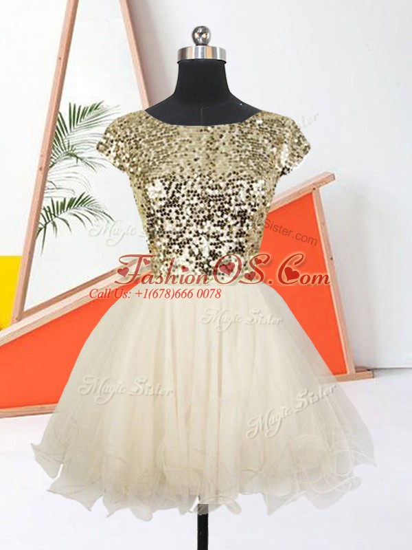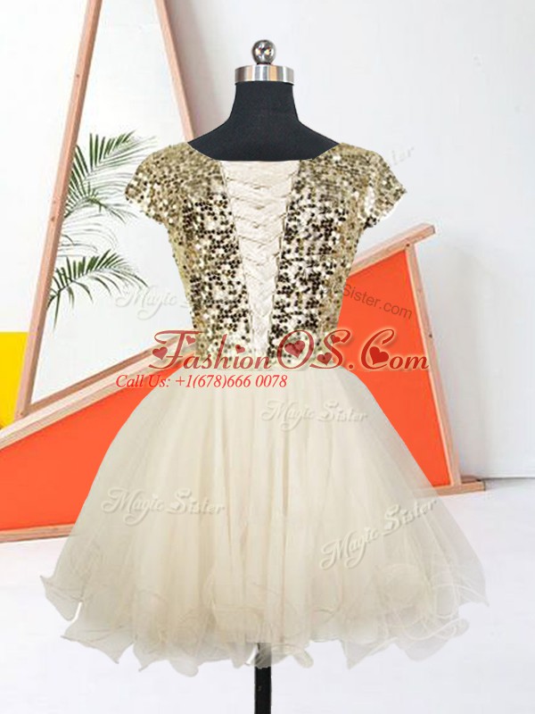 Champagne Scoop Neckline Sequins Short Sleeves Lace Up