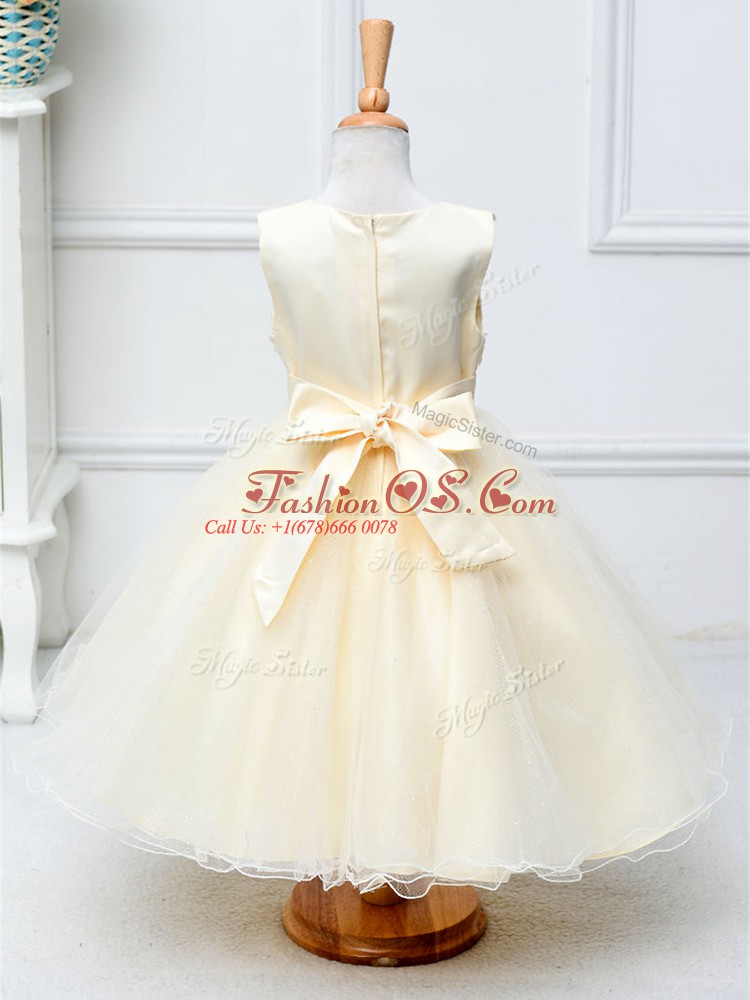 Champagne Sleeveless Tulle Zipper Little Girl Pageant Gowns for Wedding Party