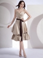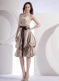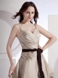 Champagne Spaghetti  Straps Black Sash Dama Dress 2013